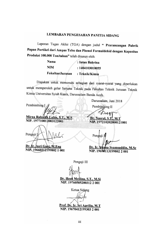 Baca Juga : PRARANCANGAN PABRIK PAPAN PARTIKEL DARI AMPAS TEBU DAN PHENOL FORMALDEHID DENGAN KAPASITAS PRODUKSI 100.000 TON PER TAHUN (INTAN BAHRINA, 2018)