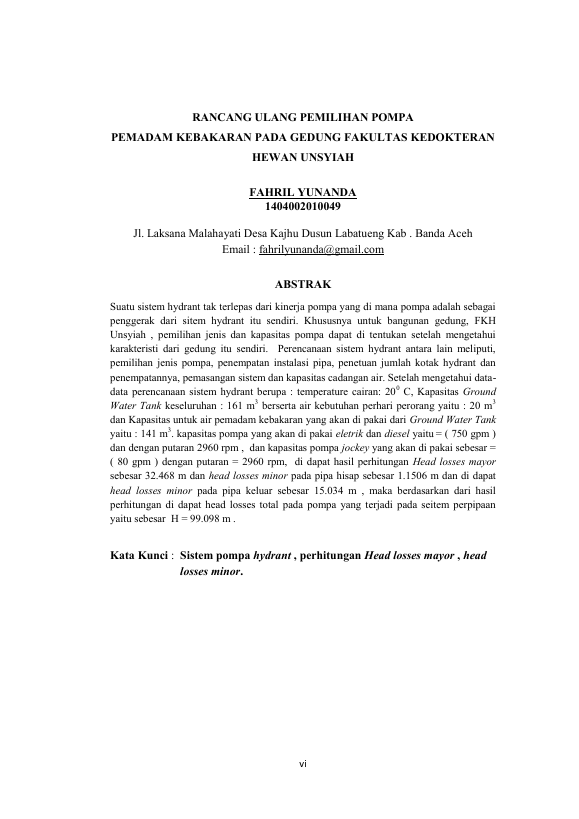 Fahril Yunanda, RANCANG ULANG PEMILIHAN POMPA PEMADAM KEBAKARAN PADA GEDUNG FAKULTAS KEDOKTERAN HEWAN UNSYIAH. Banda Aceh Universitas Syiah Kuala,2018