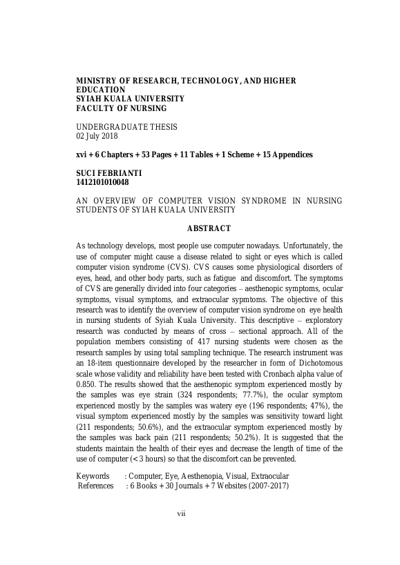 Baca Juga : FAKTOR RISIKO DAN GEJALA COMPUTER VISION SYNDROME PADA MASA PANDEMI COVID-19 DI FAKULTAS KEPERAWATAN (Nur Riski Amalia, 2022)