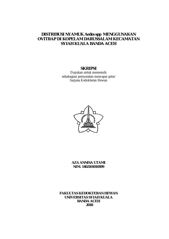 Baca Juga : IDENTIFIKASI DAN DISTRIBUSI NYAMUK AEDES VEKTOR PENYEBAB DEMAM BERDARAH DENGUE (DBD) DI DALAM KAMPUS UNIVERSITAS SYIAH KUALA (SITI PRAWITASARI BR, 2017)