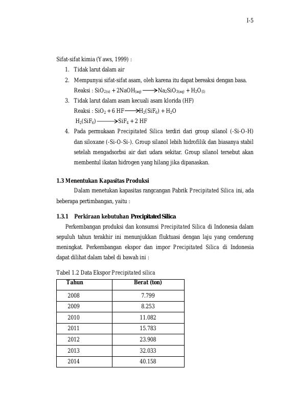 Baca Juga : PRARANCANGAN PABRIK PRECIPITATED SILICA DARI ABU SEKAM PADI DENGAN KAPASITAS PRODUKSI 40.000 TON/TAHUN (MIRA APRIANTI, 2018)