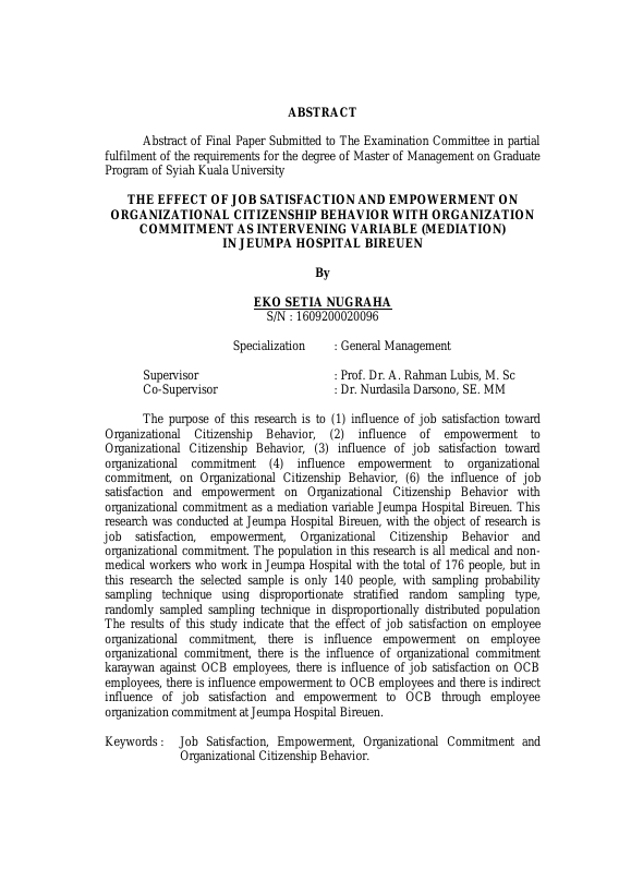 Baca Juga : PENGARUH KEPUASAN KERJA DAN KOMITMEN ORGANISASI TERHADAP ORGANIZATIONAL CITIZENSHIP BEHAVIOR DAN IMPLIKASINYA PADA KINERJA PEGAWAI DINAS KESEHATAN KABUPATEN NAGAN RAYA (ARIFUDDIN, 2018)