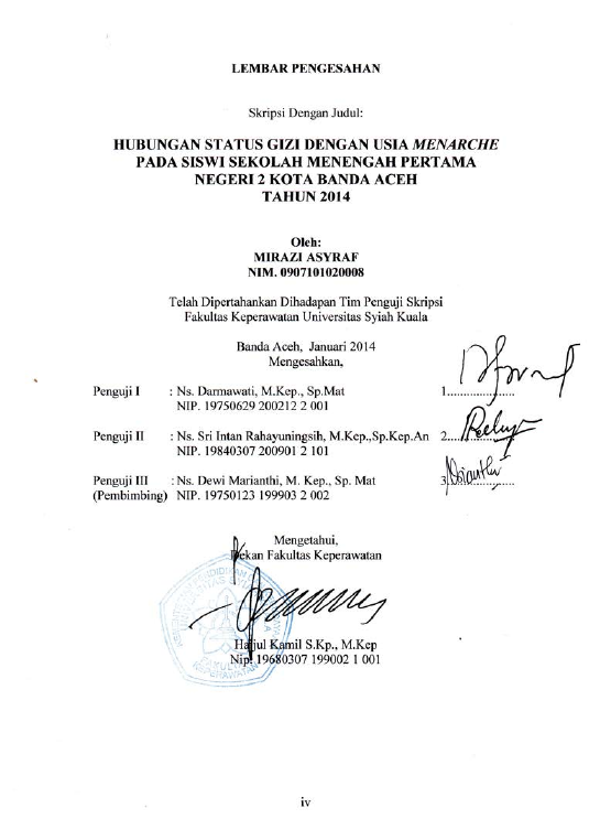 mirazi asyraf, HUBUNGAN STATUS GIZI DENGAN USIA MENARCHE PADA SISWI SEKOLAH MENENGAH PERTAMA NEGERI 2 KOTA BANDA ACEH TAHUN 2014. Banda Aceh Fakultas Keperawatan,2014
