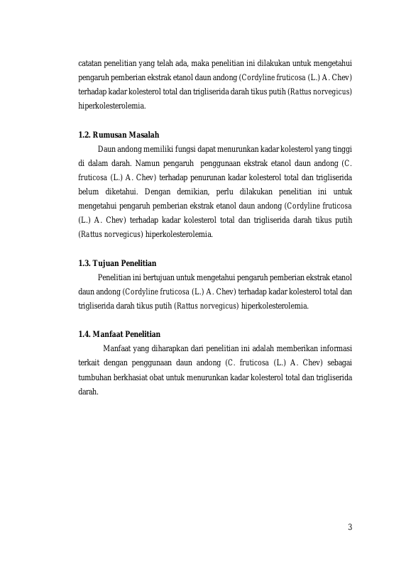 Baca Juga : PENGARUH EKSTRAK ETANOL SARANG SEMUT (MYRMECODIA SP.) LOKAL TERHADAP KADAR KOLESTEROL TOTALRNTIKUS PUTIH (RATTUS NORVEGICUS) JANTANRNHIPERKOLESTEROLEMIA (sastika rani, 2014)