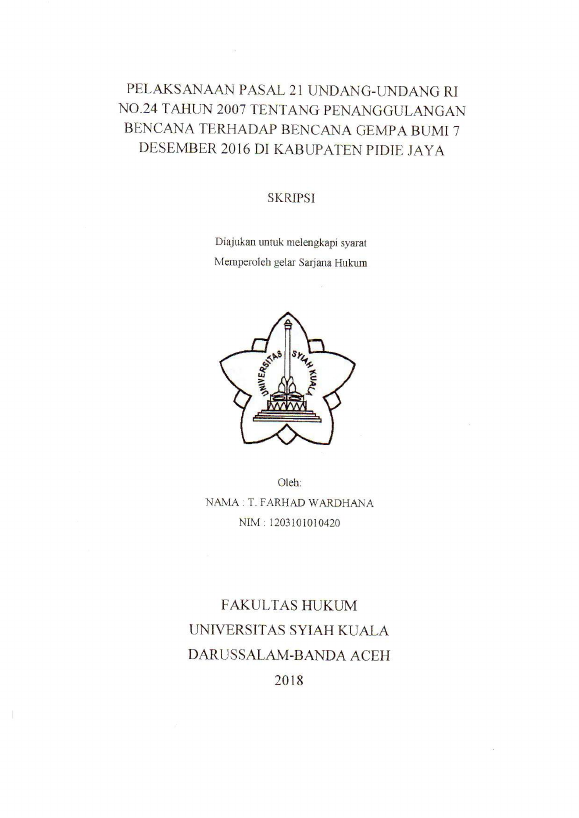 Baca Juga : EFEKTIVITAS FUNGSI BADAN PENANGGULANGAN BENCANA DAERAH DALAM PENANGGULANGAN GEMPA BUMI DI KABUPATEN PIDIE JAYA (MUKSALMINA FADRI, 2017)