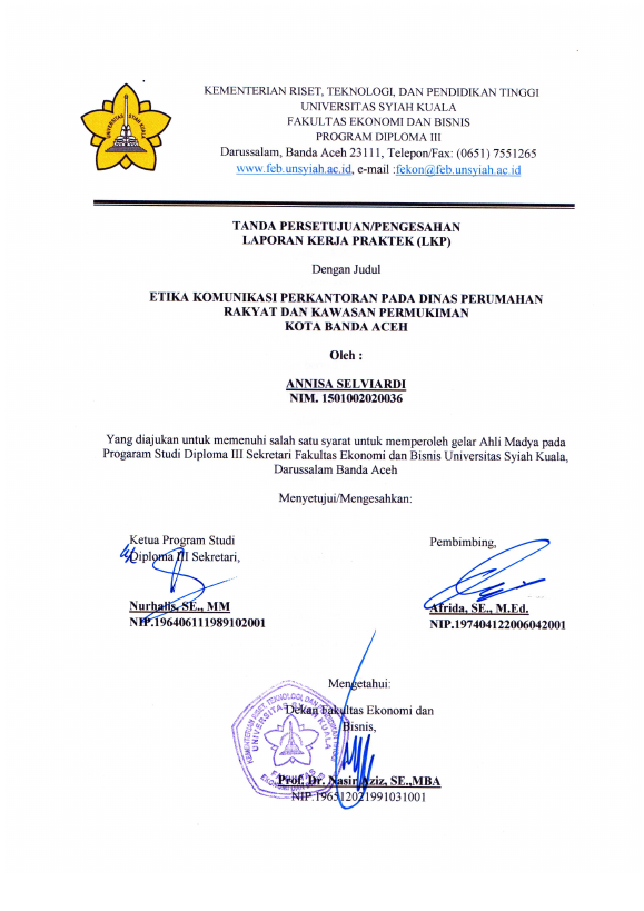 ANNISA SELVIARDI, ETIKA KOMUNIKASI PERKANTORAN PADA DINAS PERUMAHAN RAKYAT DAN KAWASAN PERMUKIMAN KOTA BANDA ACEH. Banda Aceh Universitas Syiah Kuala,2018