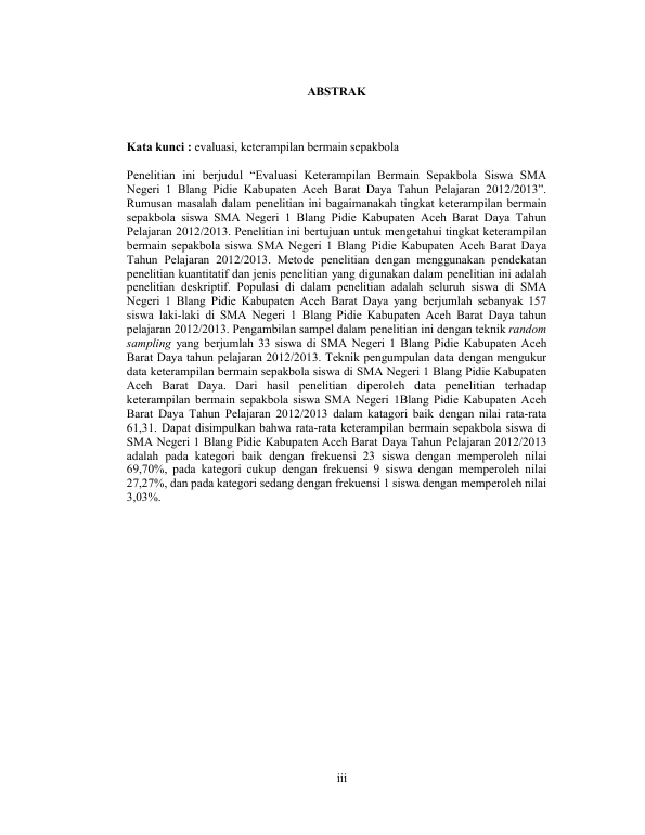 Baca Juga : EVALUASI KETERAMPILAN BERMAIN SEPAKBOLA PADA SISWA SD NEGERI 6 SYAMTALIRA BAYU KABUPATEN ACEH UTARA TAHUN PELAJARAN 2013/2014 (YUSRIMUDDIN, 2014)