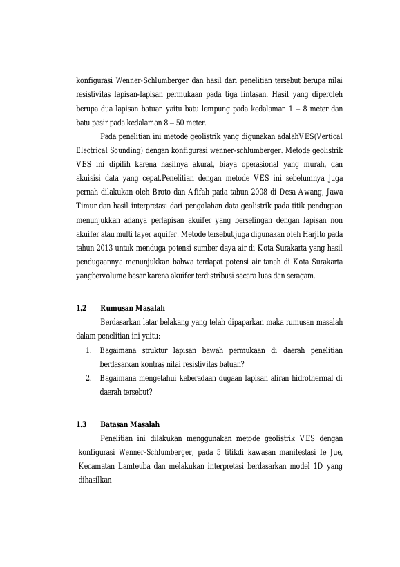 NADYA ULVA, ANALISIS STRUKTUR BAWAH PERMUKAAN KAWASAN MANIFESTASI PANAS BUMI IE JU KECAMATAN LAMTEUBA,ACEH BESAR DENGAN METODE GEOLISTRIK VES (VERTICAL ELECTRICAL SOUNDING). Banda Aceh Universitas Syiah Kuala,2018