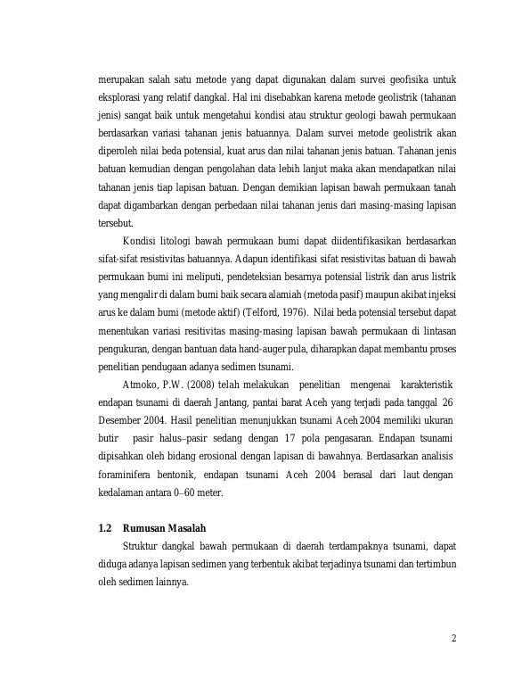 Baca Juga : PENENTUAN STRUKTUR DANGKAL BAWAH PERMUKAAN TERDAMPAK TSUNAMI BERDASARKAN DATA RESISTIVITAS DAERAH KAJHU, ACEH BESAR PENENTUAN STRUKTUR DANGKAL BAWAH PERMUKAAN TERDAMPAK TSUNAMI BERDASARKAN DATA RESISTIVITAS DAERAH KAJHU, ACEH BESAR (FARADYA ADELLA, 2018)