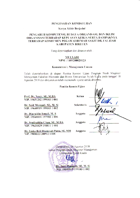 Baca Juga : PENGARUH KOMPETENSI, MOTIVASI, IKLIM ORGANISASI DAN BUDAYA ORGANISASI TERHADAP KEPUASAN KERJA SERTA DAMPAKNYA TERHADAP KINERJA GURU SEKOLAH MENENGAH ATAS NEGERI DI KOTA BANDA ACEH (IBNU SALDA, 2019)