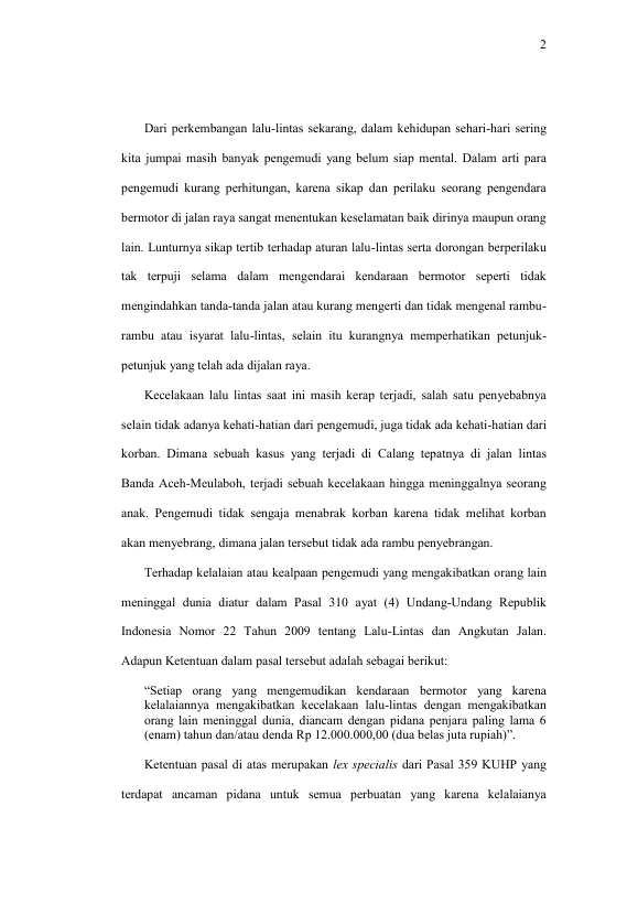 ANNISA NOVIANTY K, PENYELESAIAN TINDAK PIDANA KARENA KELALAIAN PADA KECELAKAAN LALU LINTAS MENGAKIBATKAN ORANG LAIN MENINGGAL DUNIA (SUATU PENELITIAN DI WILAYAH HUKUM PENGADILAN NEGERI CALANG). Banda Aceh Universitas Syiah Kuala,2018