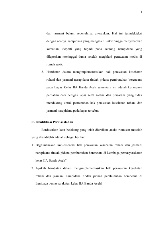 Baca Juga : PEMENUHAN HAK KESEHATAN NARAPIDANA DI LEMBAGA PEMASYARAKATAN NARKOTIKA KELAS III LANGSA (Nazaryadi, 2017)