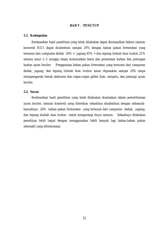 Baca Juga : PENGARUH SUBSTITUSI RANSUM KOMERSIL DENGAN BAHAN PAKAN FERMENTASI CAMPURAN DEDAK, JAGUNG, DAN TEPUNG LIMBAH IKAN LEUBIM (CANTHIDEMIS MACULATA) TERHADAP BERAT DAN PERSENTASE KARKAS AYAM BROILER (VINDA RAHMADHANI, 2018)