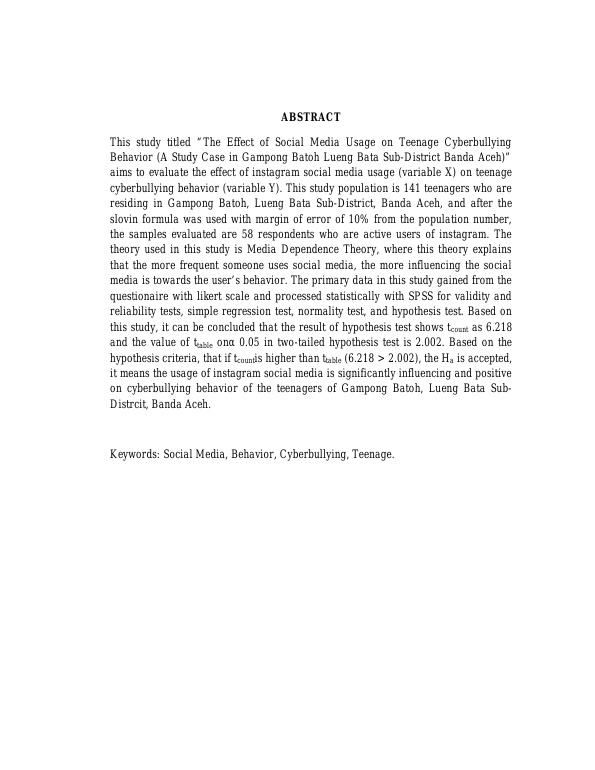 Baca Juga : GAMBARAN PERILAKU CYBERBULLYING PADA SISWA SMA DI KECAMATAN GLUMPANG TIGA (Rya Zaiyana, 2023)