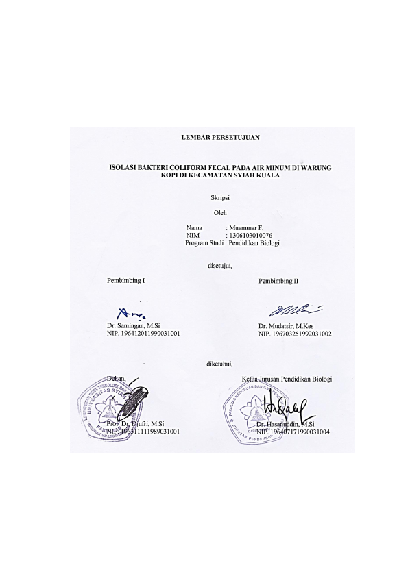Baca Juga : UJI KEBERADAAN ESCHERICHIA COLI PADA AIR TEH DI WARUNG KOPI DALAM KOTA BANDA ACEH (Teuku Maizaldi Hezron, 2022)