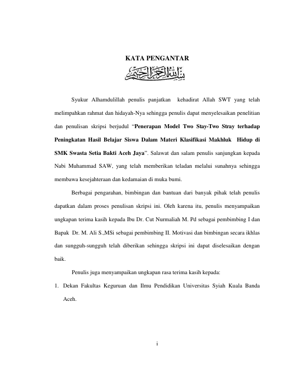 Yunifitria, PENERAPAN MODEL TWO STAY-TWO STRAY RNTERHADAP PENINGKATAN HASIL BELAJAR SISWA RNDALAM MATERI KLASIFIKASI MAKHLUK HIDUP RNDI SMK SWASTA SETIA BAKTI KABUPATEN ACEH JAYA. Banda Aceh Fakultas Keguruan dan Ilmu Pendidikan,2013