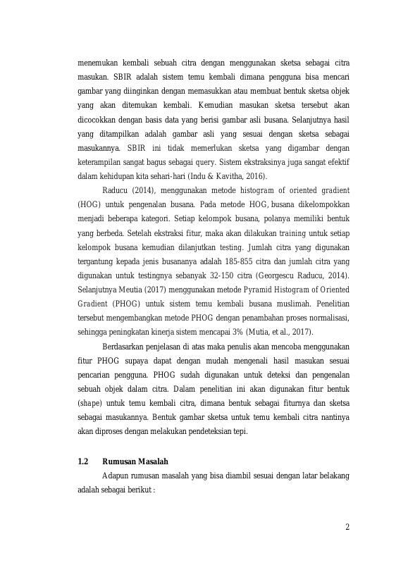 Baca Juga : APLIKASI CURVATURE SCALE SPACE (CSS) UNTUK TEMU KEMBALI CITRA BUSANA MUSLIMAH BERDASARKAN DESKRIPSI BENTUK (Hayatun Maghfirah, 2017)