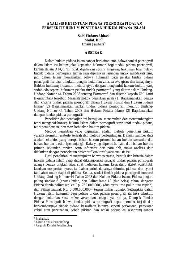 Said Firdaus Abbas, ANALISIS KETENTUAN PIDANA PORNOGRAFI DALAM PERSPEKTIF HUKUM POSITIF DAN HUKUM PIDANA ISLAM. Banda Aceh Program Studi Magister Ilmu Hukum Universitas Syiah Kuala,2018