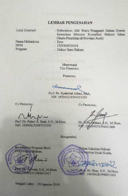 Baca Juga : KEBERADAAN AHLI WARIS PENGGANTI DALAM SISTEM KEWARISAN MENURUT KOMPILASI HUKUM ISLAM (SUATU PENELITIAN DI PROVINSI ACEH) (Ilyas, 2018)
