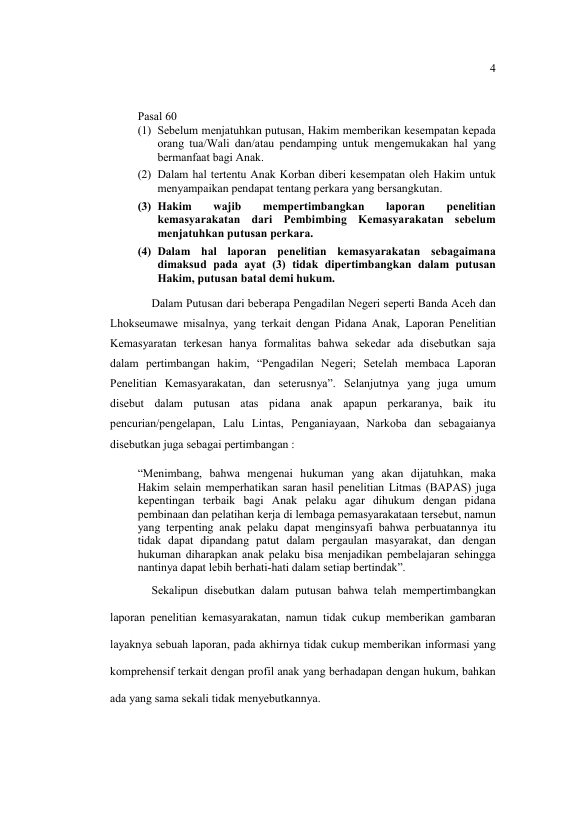 Baca Juga : PENDAMPINGAN TERHADAP ANAK YANG BERKONFLIK DENGAN HUKUM OLEH PEMBIMBING KEMASYARAKATAN PADA PEMERIKSAAN DI SIDANG PENGADILAN ( SUATU PENELITIAN DI WILAYAH HUKUM PENGADILAN NEGERI LHOKSEUMAWE) (RAHMADHANI SRI RISZKY, 2015)