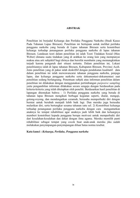 Rizkia Tanzila, KELUARGA DAN PERILAKU PENGGUNA NARKOBA ( STUDI KASUS PADA TAHANAN LAPAS BIREUEN ). Banda Aceh Universitas Syiah Kuala,2018