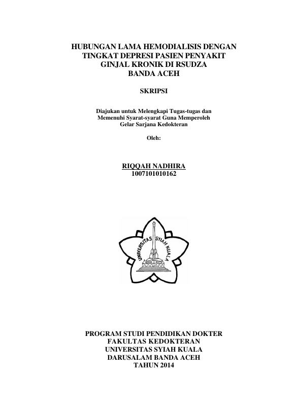 Baca Juga : HUBUNGAN LAMA HEMODIALISIS DENGAN TINGKAT DEPRESI PASIEN PENYAKIT GINJAL KRONIK DI RSUZA BANDA ACEH (Riqqah Nadhira, 2014)