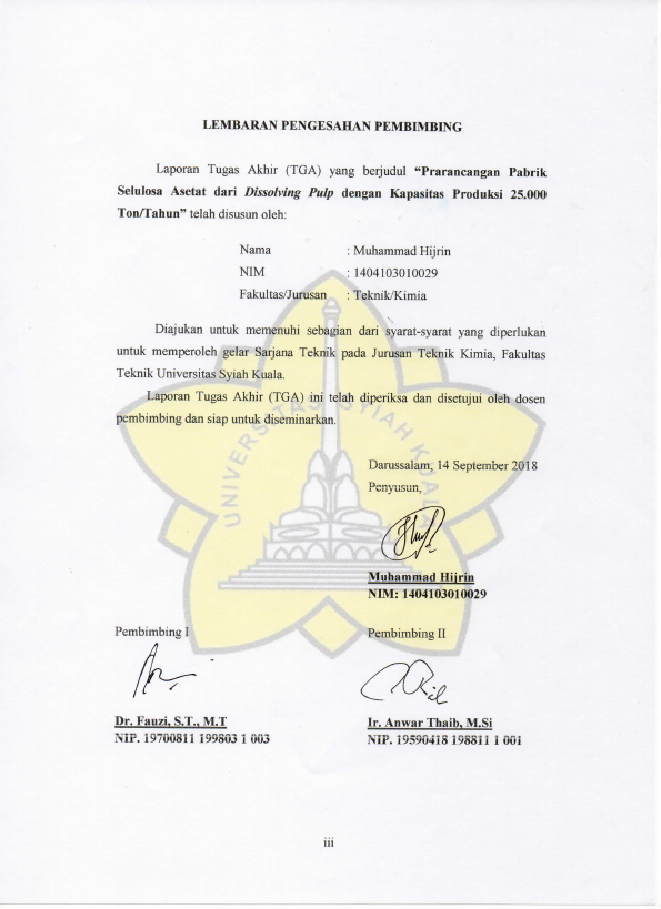 Baca Juga : PRARANCANGAN PABRIK SELULOSA ASETAT DARI TANDAN KOSONG KELAPA SAWIT DENGAN KAPASITAS PRODUKSI 30.000 TON/TAHUN (Zerlinda Putri, 2017)