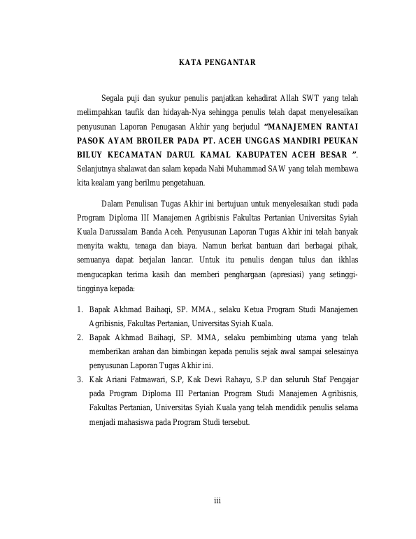 Baca Juga : MANAJEMEN PEMBERIAN PAKAN AYAM BROILER PADA PT. ACEH UNGGAS MANDIRI PEUKAN BILUY KECAMATAN DARUL KAMAL KABUPATEN ACEH BESAR (ARY ARDIANSYAH, 2018)