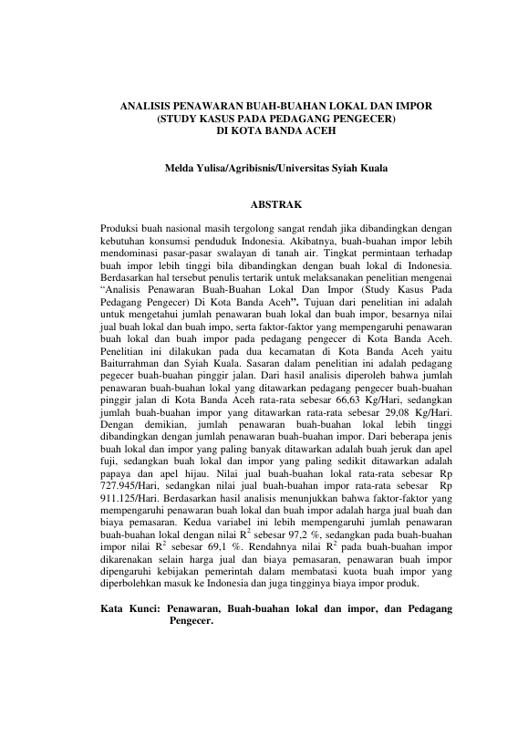 (SEBUAH KAJIAN AWAL PADA PEMASARAN BUAH-BUAHAN DI KOTA BANDA ACEH) (Fajri Fahmy, 2013)