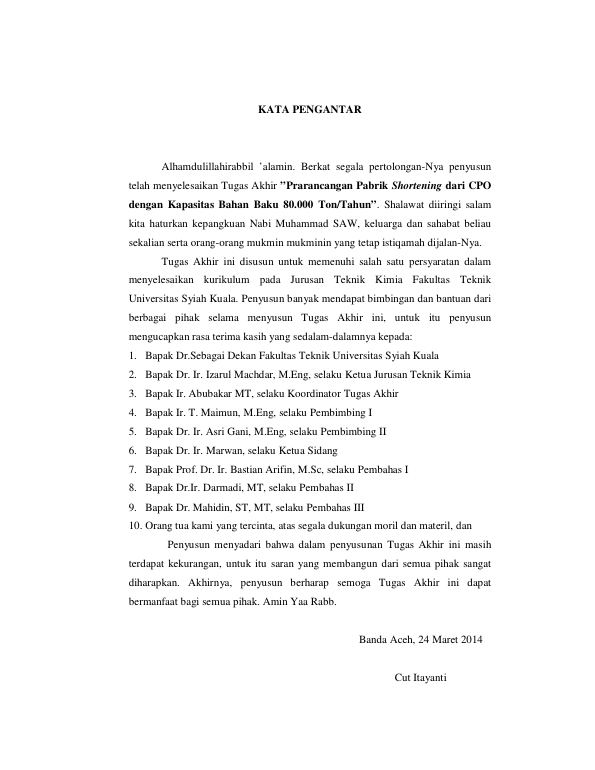 Baca Juga : PRA-RANCANGAN PABRIK SHORTENING DARI CPO DENGAN KAPASITAS BAHAN BAKU 80.000 TON/TAHUN (Cut Itayanti, 2014)