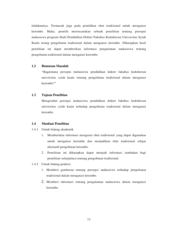 Siti Hardianti, PERSEPSI MAHASISWA PENDIDIKAN DOKTER FAKULTAS KEDOKTERAN UNIVERSITAS SYIAH KUALA TENTANG PENGOBATAN TRADISIONAL DALAM MENGATASI KETOMBE. Banda Aceh Fakultas Kedokteran,2014