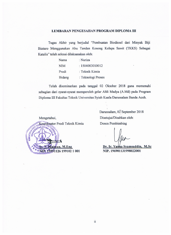 Baca Juga : PEMBUATAN BIODIESEL DARI MINYAK BIJI BINTARO MENGGUNAKAN ABU TANDAN KOSONG KELAPA SAWIT (TKKS) SEBAGAI KATALIS (MELIZA GHARSINA, 2018)