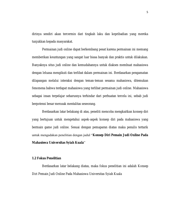 Baca Juga : KONSEP DIRI PEMAIN JUDI ONLINE PADA MAHASISWA UNIVERSITAS SYIAH KUALA (Nur Azizah Sabrani Marbun, 2018)
