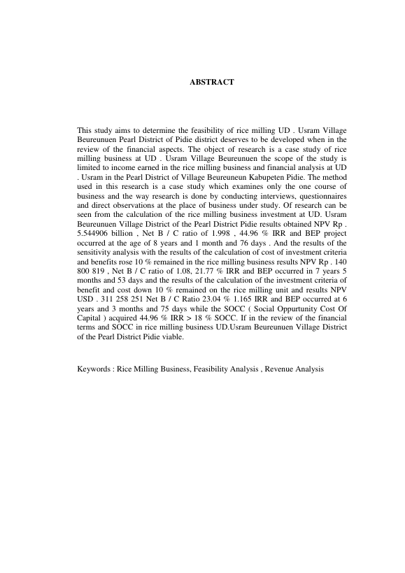 Rachmat Randy Ramadhan, ANALISIS FINANSIAL USAHA PENGGILINGAN PADI STUDI KASUS PADA UD. USRAM DESA BEUREUNUEN KECAMATAN MUTIARA KABUPATEN PIDIE. Banda Aceh Fakultas Pertanian,2014