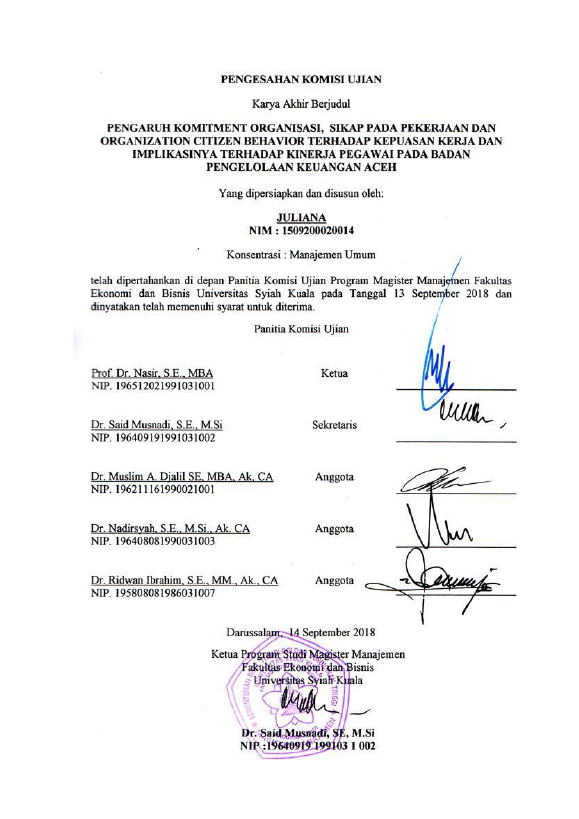 Baca Juga : PENGARUH KEPUASAN KERJA, KETERLIBATAN DALAM PEKERJAAN DAN GAYA KEPEMIMPINAN TERHADAP KOMITMEN ORGANISASI DAN DAMPAKNYA TERHADAP KINERJA PEGAWAI DINAS PEMBERDAYAAN MASYARAKAT DAN GAMPONG ACEH (SABARIAH, 2018)