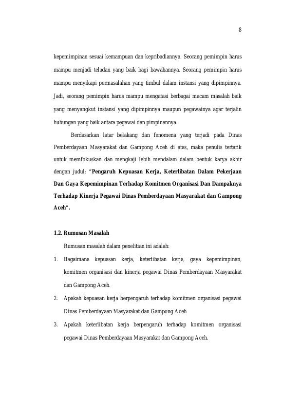 Baca Juga : PENGARUH ORGANISASI PEMBELAJARAN, GAYA KEPEMIMPINAN DAN BUDAYA ORGANISASI TERHADAP KOMITMEN ORGANISASI DAN DAMPAKNYA PADA KINERJA PEGAWAI PADA BADAN PENGELOLAAN KEUANGAN ACEH (MAISARAH, 2018)