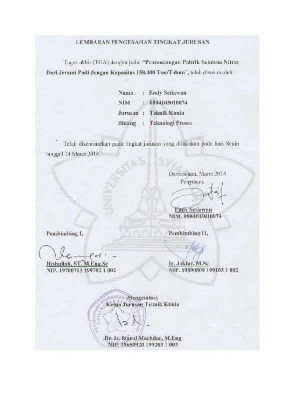 endy setiawan, PRARANCANGAN PABRIK SELULOSA NITRAT DARI JERAMI PADI DENGAN KAPASITAS 158.400 TON/TAHUN. Banda Aceh Fakultas Teknik,2014
