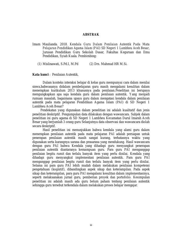 Baca Juga : PENERAPAN PENILAIAN AUTENTIK OLEH GURU IPA DI SMP/MTS NEGERI SE-KOTA BANDA ACEH (Gita Ariyani Nasution, 2016)