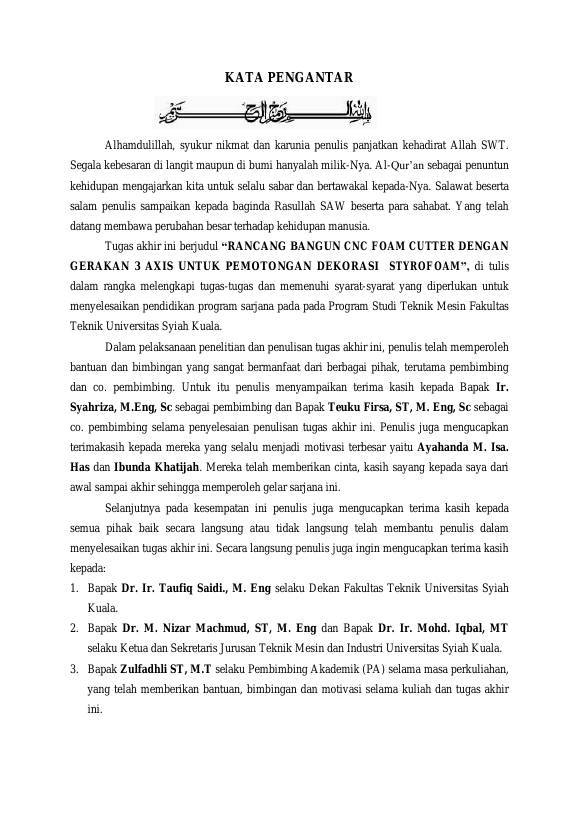 ZULHALIMI, RANCANG BANGUN CNC FOAM CUTTER DENGAN GERAKAN 3 AXIS UNTUK PEMOTONGAN DEKORASI STYROFOAM. Banda Aceh Universitas Syiah Kuala,2018
