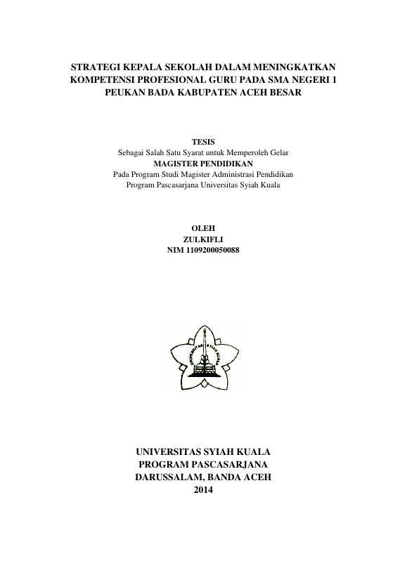 Baca Juga : STRATEGI KEPALA SEKOLAH DALAM MENINGKATKAN KOMPETENSI PROFESIONAL GURU PADA RNSD NEGERI 2 BANDA ACEH (AIDA IRWANA, 2015)