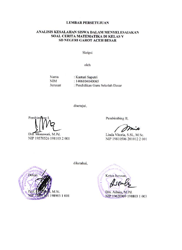 Baca Juga : ANALISIS KESALAHAN SISWA DALAM MENYELESAIKAN SOAL CERITA MATEMATIKA PADA UJIAN SEMESTER GANJIL TAHUN AJARAN 2019/2020 DI KELAS IV SDN 1 BANDA ACEH (Tasya Delora Arrumy, 2020)