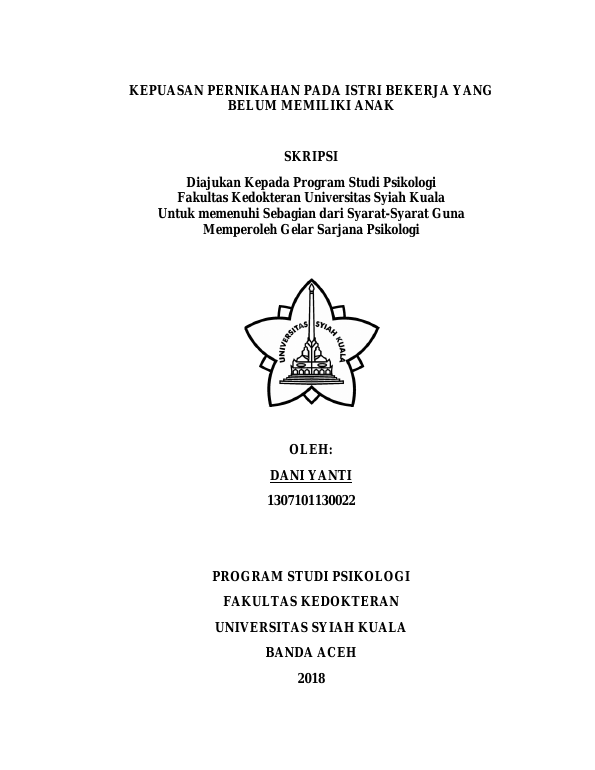 DANIYANTI, KEPUASAN PERNIKAHAN PADA ISTRI BEKERJA YANG BELUM MEMILIKI ANAK. Banda Aceh FAKULTAS KEDOKTERAN UNIVERSITAS SYIAH KUALA,2018