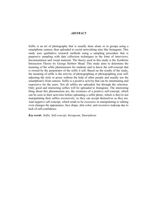 Baca Juga : SELFIE DI MEDIA SOSIAL (STUDI PEMAKNAAN DAN KONSEP DIRI DI INSTAGRAM PADA MAHASISWA FISIP UNIVERSITAS SYIAH KUALA) (NADILA ULVA, 2018)