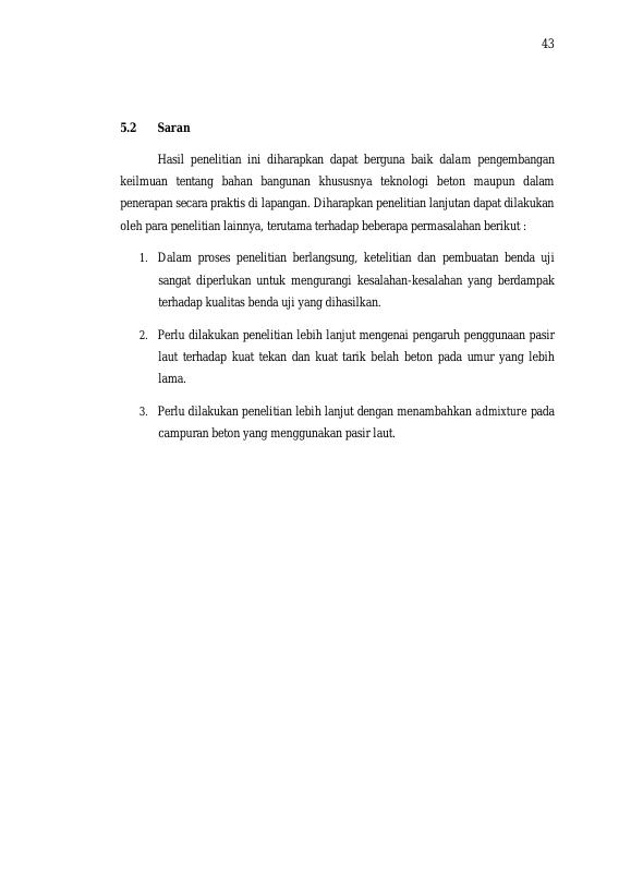 Baca Juga : PENGARUH PENGGUNAAN PASIR LAUT DALAM CAMPURAN BETON TERHADAP KUAT TEKAN DAN KUAT TARIK BELAH BETON DENGAN FAS 0,45 (KIRAMI BARARAH, 2018)