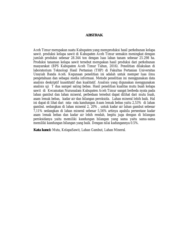 KELAPA SAWIT DI KECAMATAN BAKONGAN TIMUR KABUPATEN ACEH SELATAN (Masrafit, 2013)