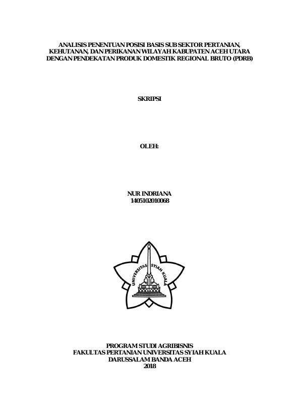 Baca Juga : ANALISIS PENENTUAN POSISI BASIS SUB SEKTOR PERTANIAN, KEHUTANAN, DAN PERIKANAN WILAYAH KABUPATEN ACEH UTARA DENGAN PENDEKATAN PRODUK DOMESTIK REGIONAL BRUTO (PDRB) (NUR INDRIANA, 2019)