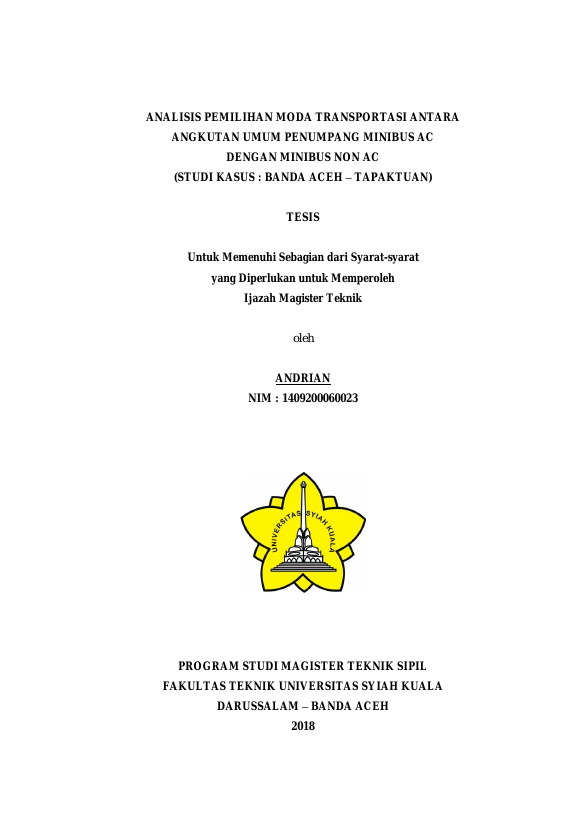 Baca Juga : ANALISIS PEMILIHAN MODA TRANSPORTASI ANTARA ANGKUTAN UMUM PENUMPANG MINIBUS AC DENGAN MINIBUS NON AC (STUDI KASUS : BANDA ACEH – TAPAKTUAN) (ANDRIAN, 2019)