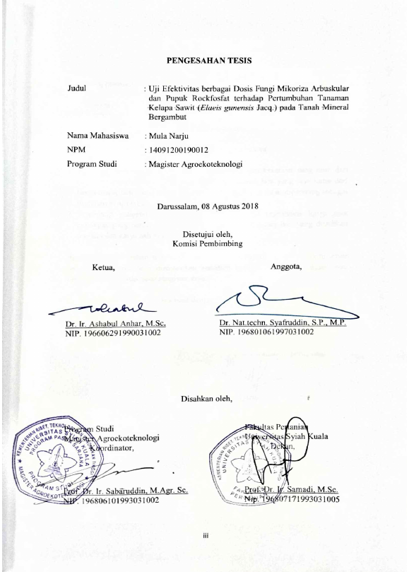 Baca Juga : PENGARUH FUNGI MIKORIZA ARBUSKULA INDIGENOUS DAN PUPUK ROCK PHOSPHATE TERHADAP PERTUMBUHAN BIBIT KELAPA SAWIT (ELAEIS GUINEENSIS JACQ.) DI MAIN NURSERY PADA HISTOSOL (MUHAMMAD IQBAL, 2016)