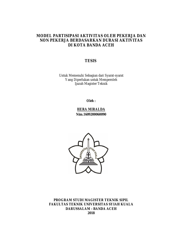 Baca Juga : MODEL PARTISIPASI AKTIVITAS OLEH PEKERJA DAN NON-PEKERJA BERDASARKAN TUJUAN PERJALANAN DI KOTA BANDA ACEH (HAFNI HIJRIA, 2019)