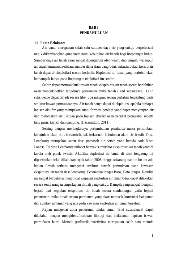 TUANKU YUSUF, IDENTIFIKASI ZONA LAND SUBSIDENCE PADA KAWASAN EKSPLOITASI AIR TANAH DI DESA LENGKONG, LANGSA BARO, KOTA LANGSA MENGGUNAKAN METODE GEOLISTRIK RESISTIVITAS. Banda Aceh Universitas Syiah Kuala,2019